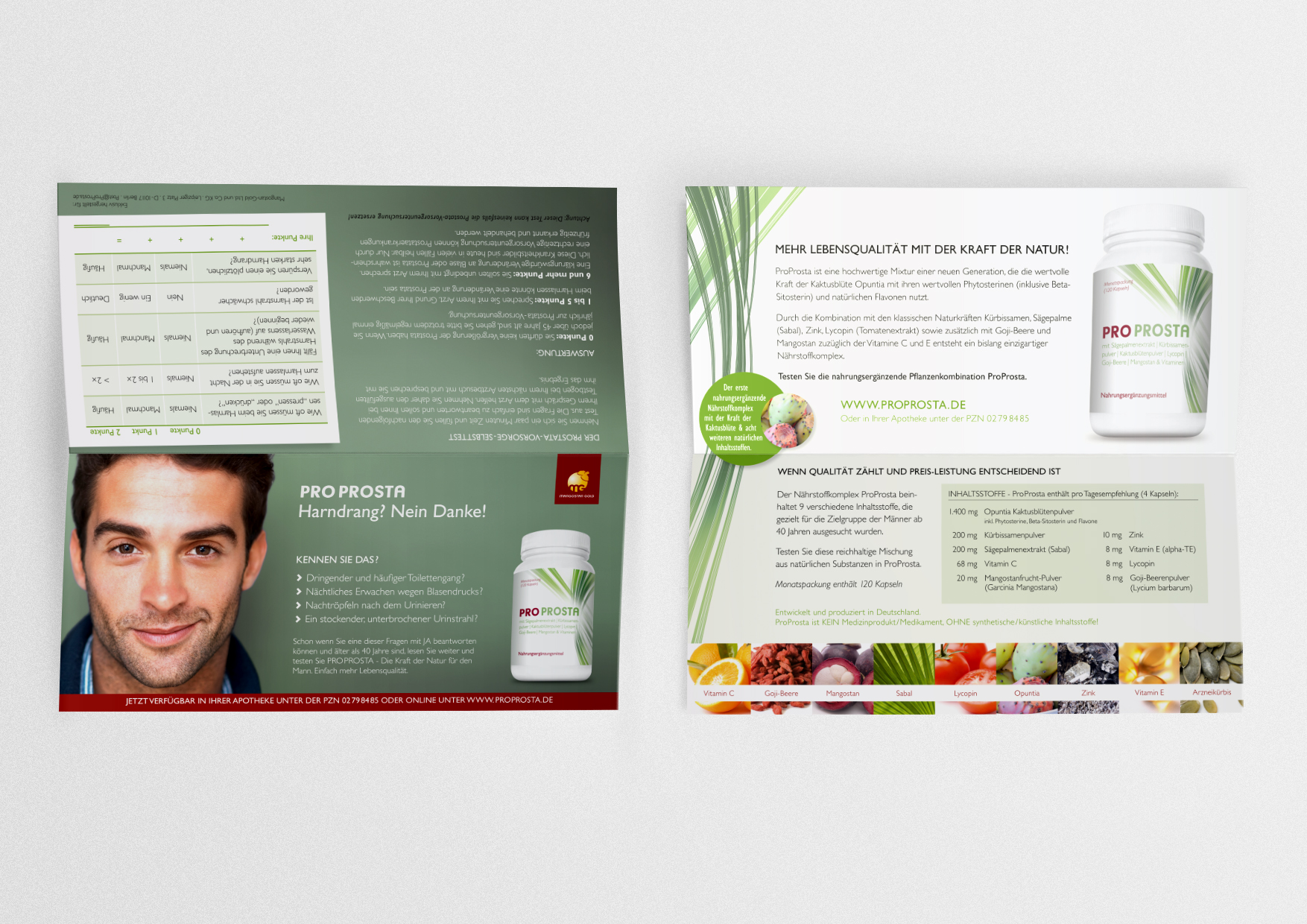 Neben dem Webdesign wurde für ProProsta eine Anzeige, sowie ein 4-seitiger Flyer gestaltet und umgesetzt.