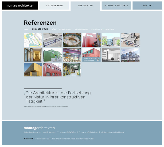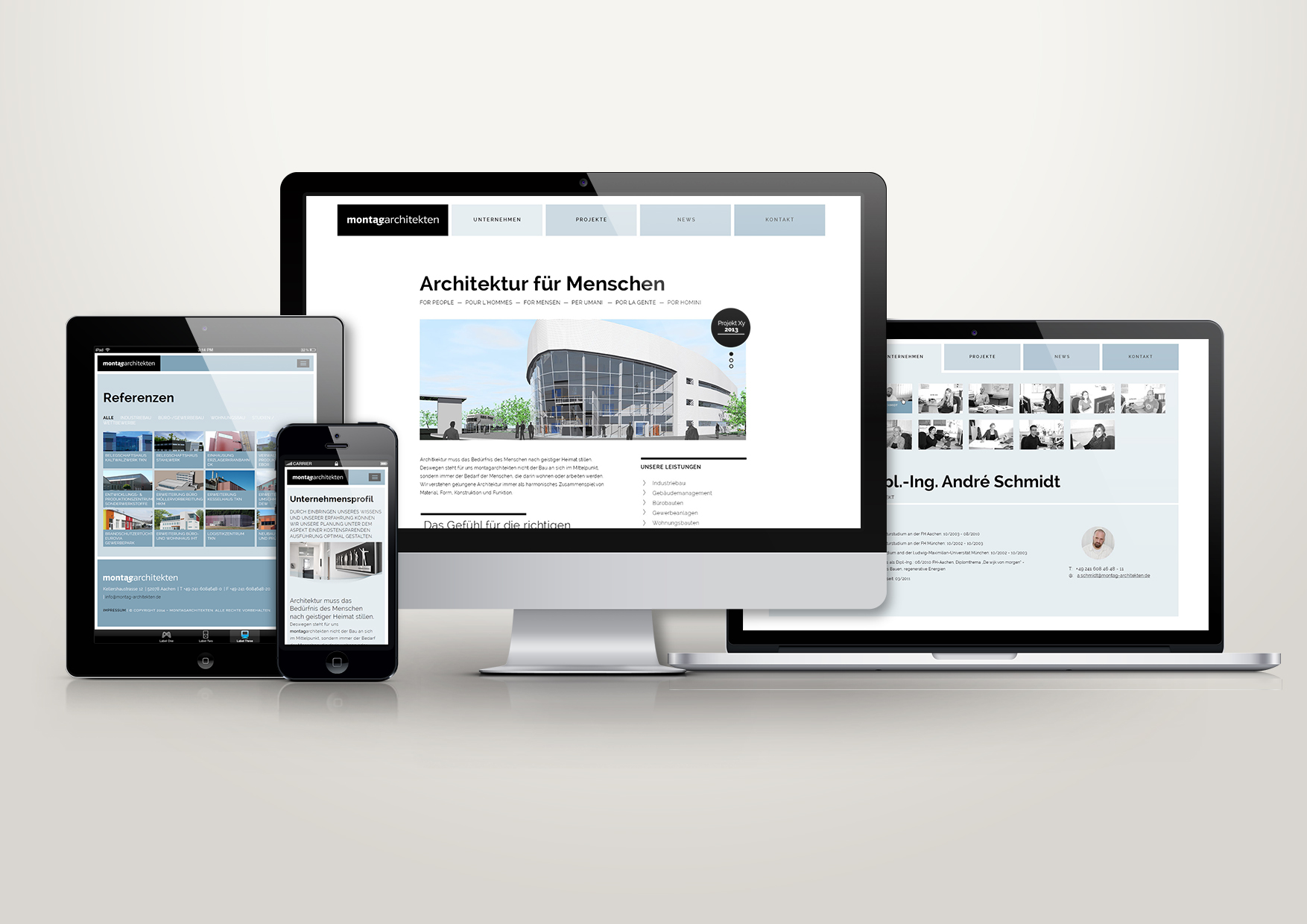 Das moderne Responsive Webdesign bringt die Außendarstellung des Architekturbüros wieder auf den neuesten Stand. [Online-Version wurde nachträglich verändert: www.montag-architekten.de]